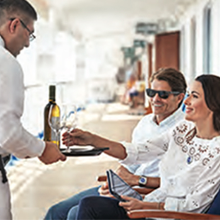 各種デバイスからメダリオン・クラスのアプリにアクセスし、食事や飲み物、船内ショップの商品などを注文すると、船内のどこへでも直接お届けします。